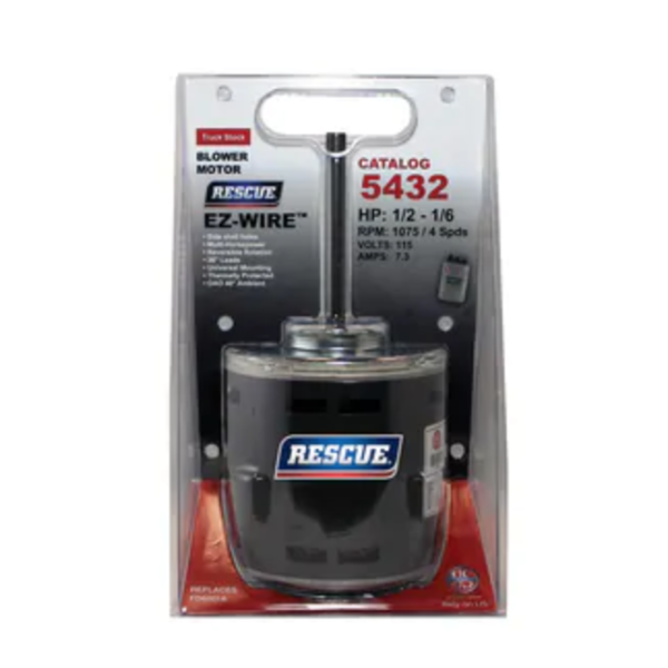Rescue® EZ-Wire™ Blower Motor 1/2-1/6 w/ Capacitor 1075 RMP (115v)